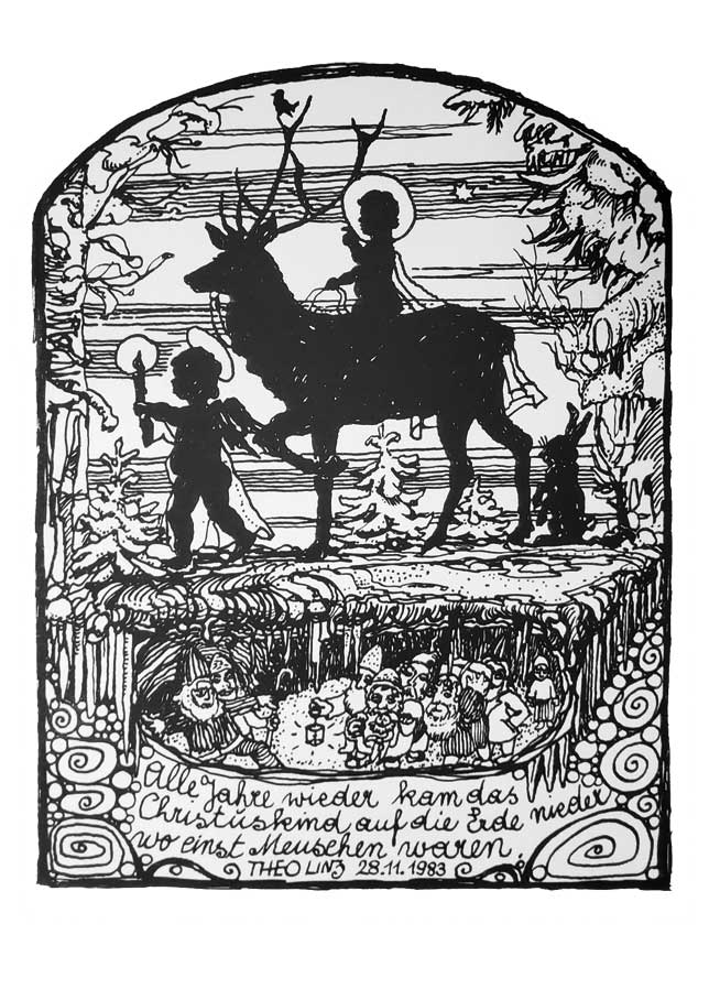 Theo Linz, Alle Jahre wieder, Tusche 1983, 130 x 100 mm