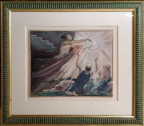 43. Theo Linz, Die Jungfrau mit den Kücken, Mischtechnik