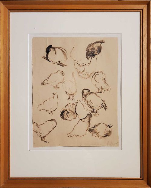 17. Unbekannt, Studie zu Hühnern, Tusche