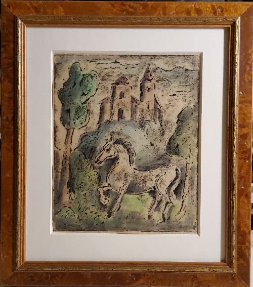 13. Franz von Zülow, Pferd vor Schloss, Lithographie, koloriert