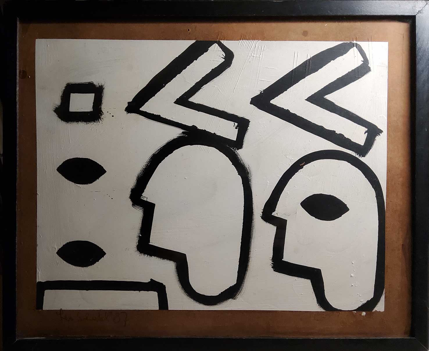 "zwei Köpfe", Acryl/Lederkarton, 1987, 42.6 x 52.6 cm, Bild: 40 x 50 cm , € 950.--