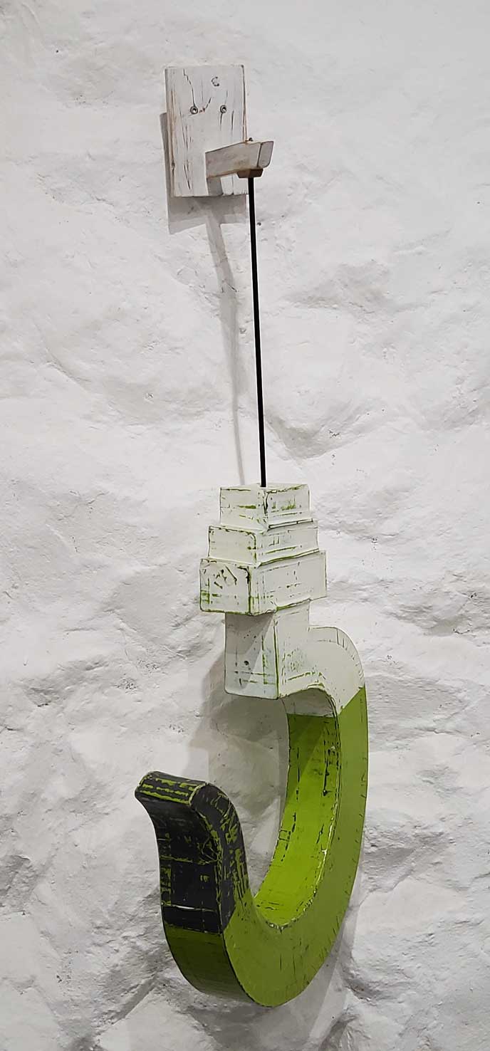 "Hooked", Buchbinder Karton, Acryl, Klebeband, Kautschuk, 2019, 85 x 37 x 20 cm , € 1100.--