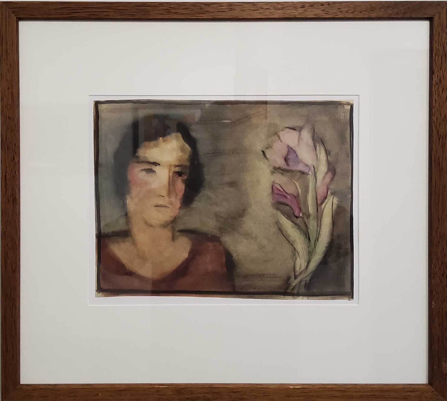 "Frau mit Lilie", Pastell, nicht datiert, 53 x 46 cm, Bild: 24.5 x 31 cm , € 750.--