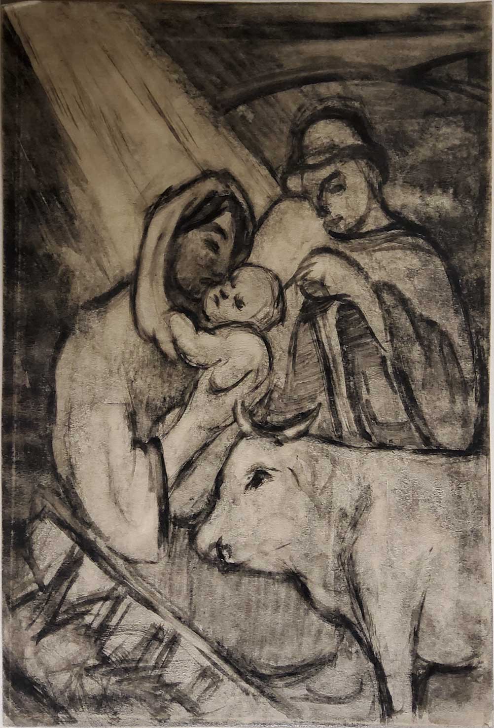 "Hl. Familie", Kohle/Papier, nicht datiert, 44.3 x 34.3 cm, Bild: 25.5 x 17.7 cm , € 550.--