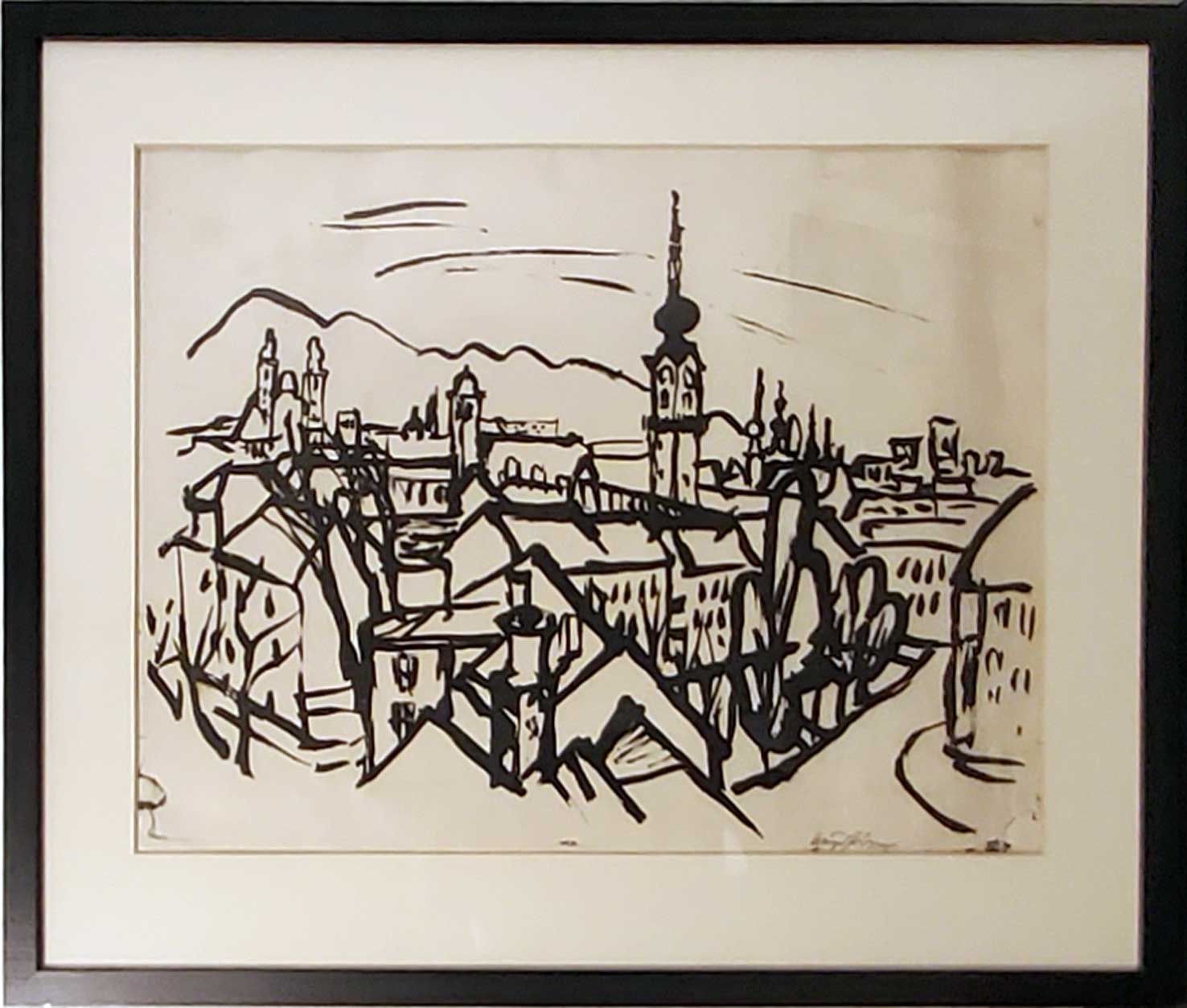 "Linz", Lithographie, nicht datiert, 55 x 68 cm, Bild: 38 x 53 cm , € 280.--