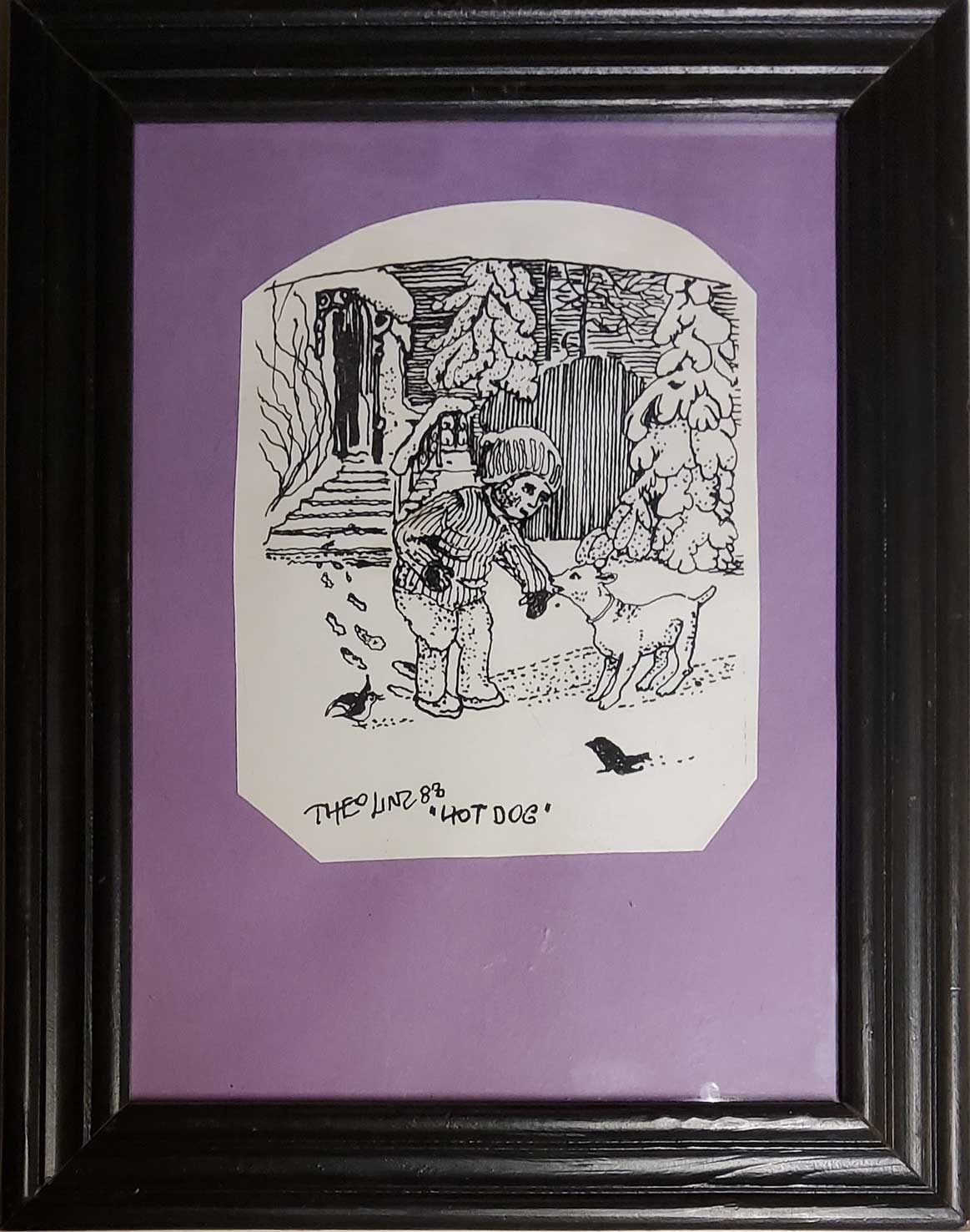"Hot Dog", Feder, 1988, 28.5 x 22.5 cm, Bild: 15.2 x 12 cm , € 150.--