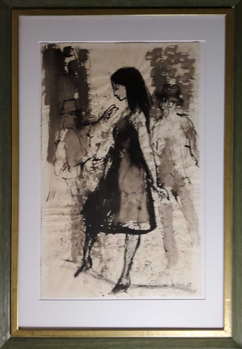"Mädchen und 2 Gestalten", Tusche auf Papier, 1963, 67 x 47 cm, Bild: 48.5 x 31 cm , € 550.--