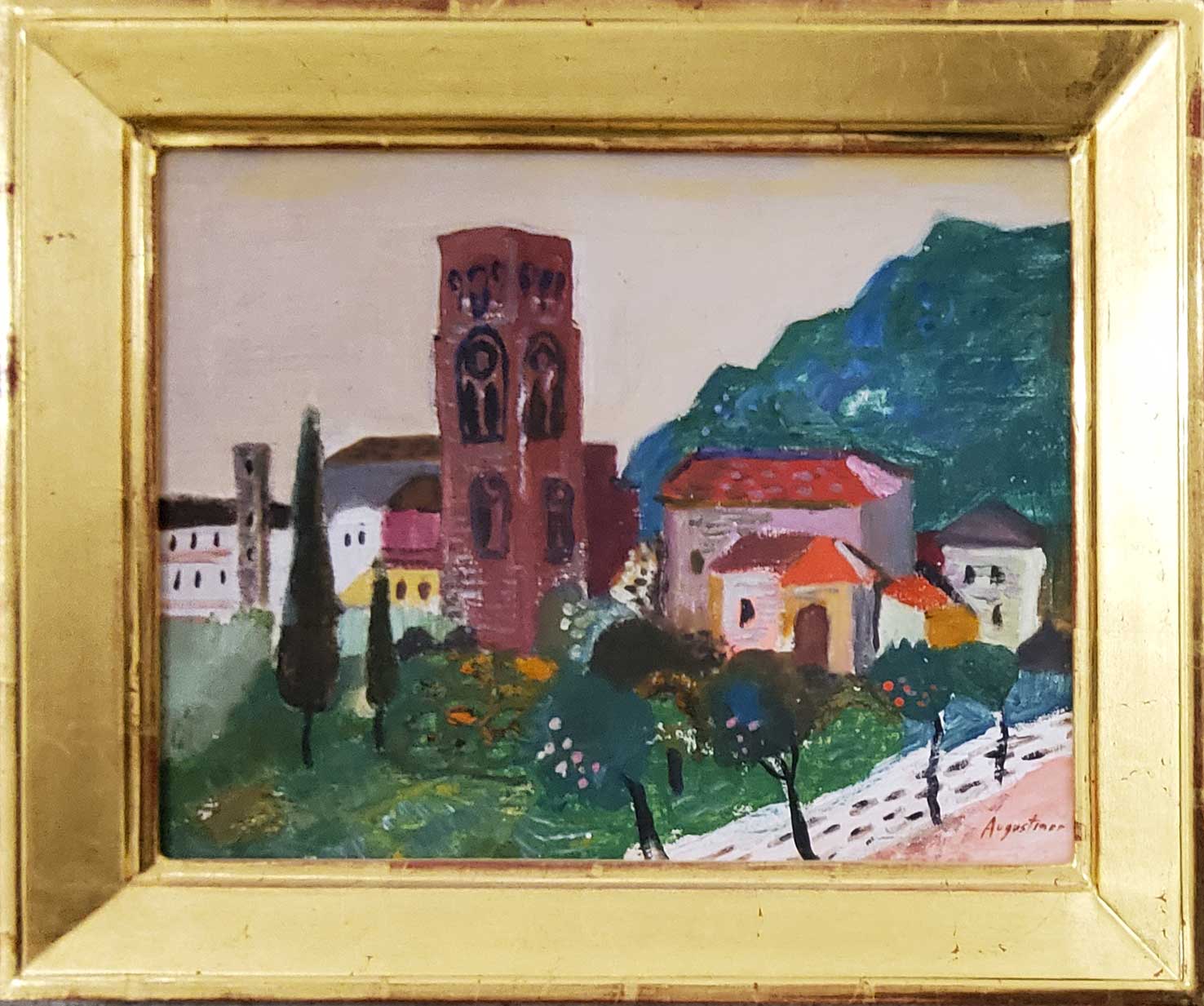 "Roter Turm", Öl auf Karton, nicht datiert, 30.3 x 36.7 cm, Bild: 24 x 30 cm , € 980.--